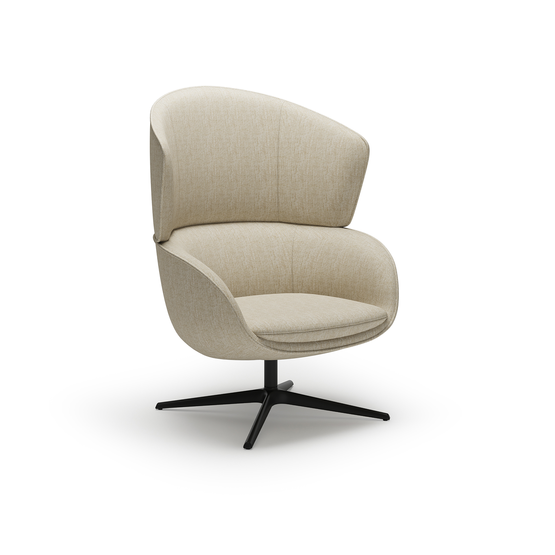 宽大的座椅靠背和柔软的枕头展示了椅子的两个主要特点,开放和私密。