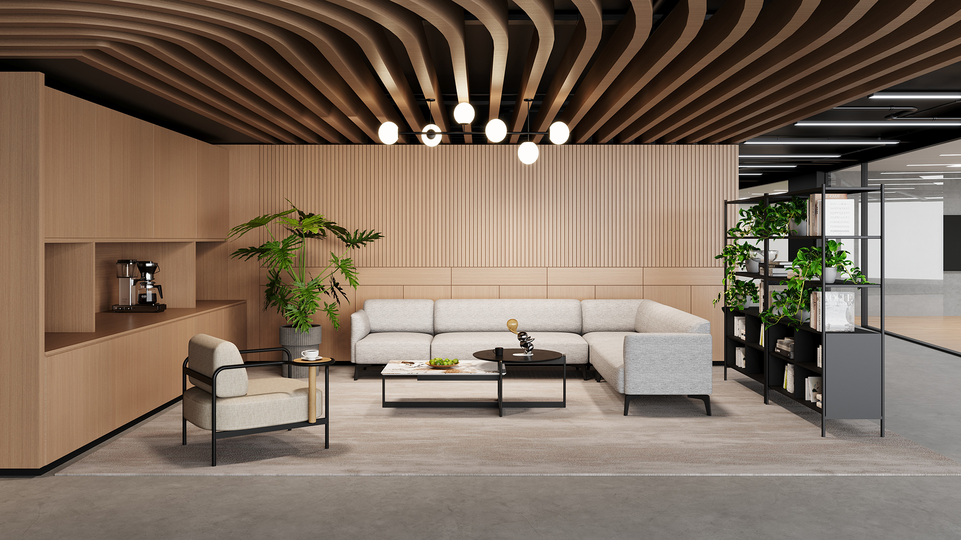 飞瀑沙发的整体造型融合了现代设计元素和艺术美感,支撑脚采用了两块弯折的金属片,造型灵感来源于从高耸山石飞流直下的瀑布。这种独特的底座设计使得沙发整体造型简洁,富有现代感。独立模块赋予了用户极大的设计自由度,用户可以根据个人喜好和空间需求选择合适的软包款式,打造出独具个性的沙发。