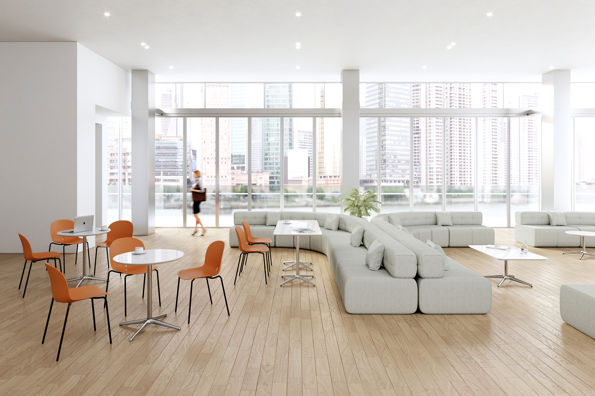 塔夫系列采用压铸铝制成的抛光四星脚和不锈钢中柱。桌脚可调节。拥有不同高度,尺寸和饰面的选择,适用于各种公共空间。